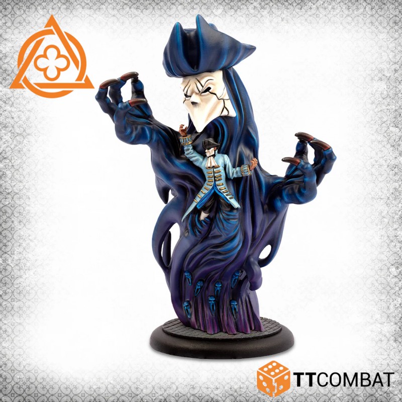 This set includes Black Spectre, a Gifted character available for hire. Able to slip through buildings, he can fly wherever he wishes and drain the life from his enemies. With his penetrating spectral touch and ability to stun foes, few adversaries escape his grasp, making him one of the most powerful characters in Carnevale.