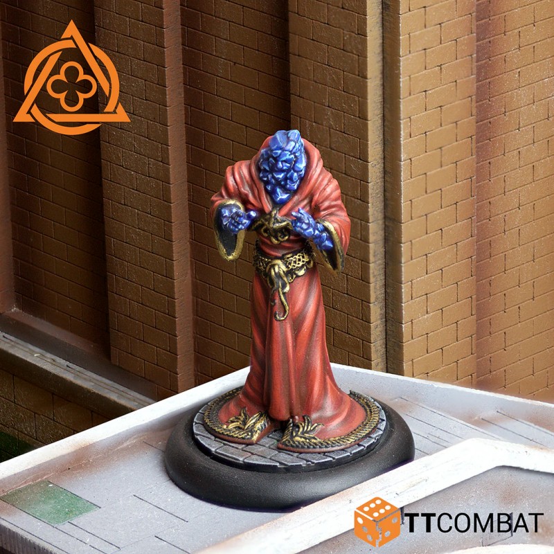 This set contains the Guardian’s Reflection, a fascinating character to add to your gang. It allows you to mix Agendas, spend Willpower points to boost a single roll, and regain Willpower when other characters use theirs. The kit includes one resin miniature and one plastic base, while the illustrated stone base is sold separately. The miniature is supplied unpainted and unassembled, requiring cleaning and assembly, with minor adjustments possibly needed to fill small gaps.