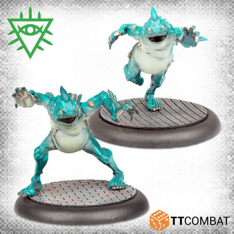 This set contains two Lesser Ugdru, claws drawn and ready to tear into anything that dares oppose them. These Small Ugdru are elite minions, more than capable of standing toe-to-toe with most Heroes. Able to swim swiftly and strike without hesitation or remorse, they turn every waterway into a deadly trap for their prey.