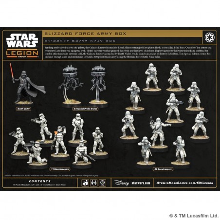 This Blizzard Force Special Edition Starter Set contains a 600-point Recon-level army, making it an ideal entry point for new players or a thematic expansion for existing Imperial commanders. It includes a Special Edition alternate sculpt of Darth Vader, adding a unique centerpiece to your collection. The set also provides everything needed to begin playing your first games of Star WarsTM: Legion, including dice, templates, tools, and tokens. Miniatures are supplied unpainted and require assembly.