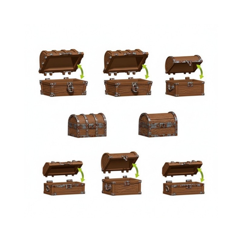 Customize your dungeons and gaming tiles with these carefully crafted accessories. Their high level of detail allows you to add treasure, obstacles, or scenic elements directly onto your boards. These chests are ideal for a variety of setups, from haunted dungeons and mysterious crypts to medieval fortresses, creating a more engaging and visually rich experience for players.