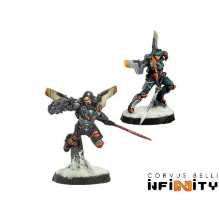 The pack contains 2 miniatures: 1 Yuan Yuan with a DA CC weapon and 1 Yuan Yuan with a chain rifle. These units add a mix of close-combat strength and ranged firepower to your collection, perfect for aggressive and unpredictable tactics.