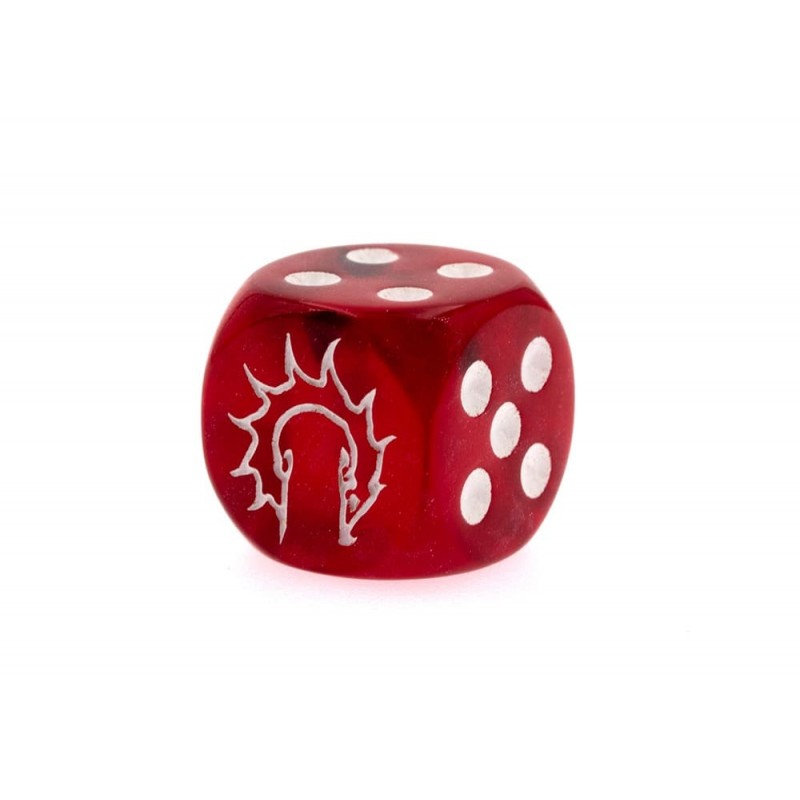 A detailed and immersive design: this set includes 24 resin dice measuring 16 mm, with a dark red marbled finish and inlaid white pips for clear visibility. The Conquest symbol replaces the 1 face, giving each roll a strong and recognizable identity.