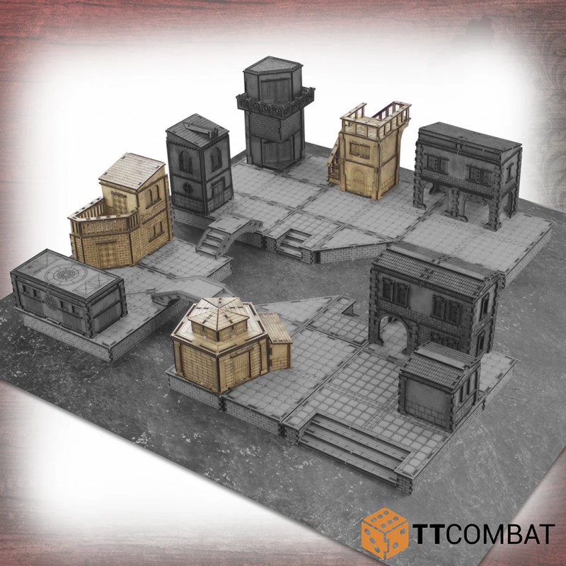 Les kits modulaires vénitiens sont conçus pour fonctionner ensemble, créant des ensembles plus impressionnants que la somme de leurs parties. Grâce à un système de clips pratique, les bâtiments peuvent être reliés pour former des groupes de maisons complexes, reproduisant fidèlement l’aspect et la densité de Venise. Cela permet une personnalisation et un agencement créatif infinis sur votre plateau.