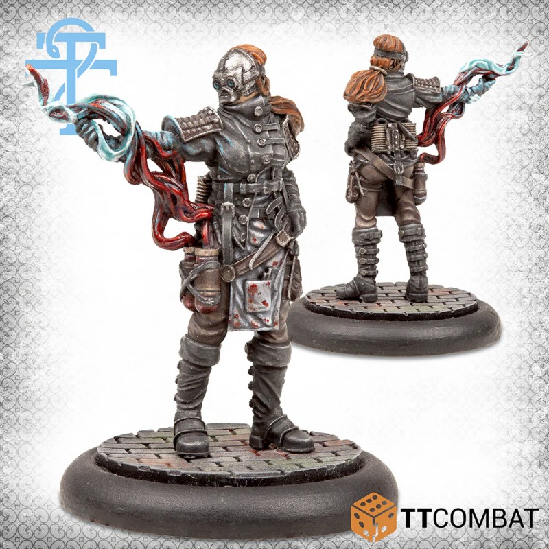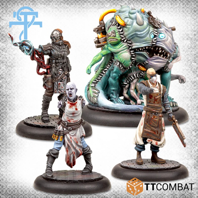 This set is an excellent addition to any Doctors gang. The Doctor of Blood is a mage who has unlocked the secrets of magical bloodletting and can fuel his own blood jets. The Morgue Doctor brings powerful magic and an imposing presence, while a Doctor of Venusty provides support, though they may struggle with heavy loads.