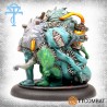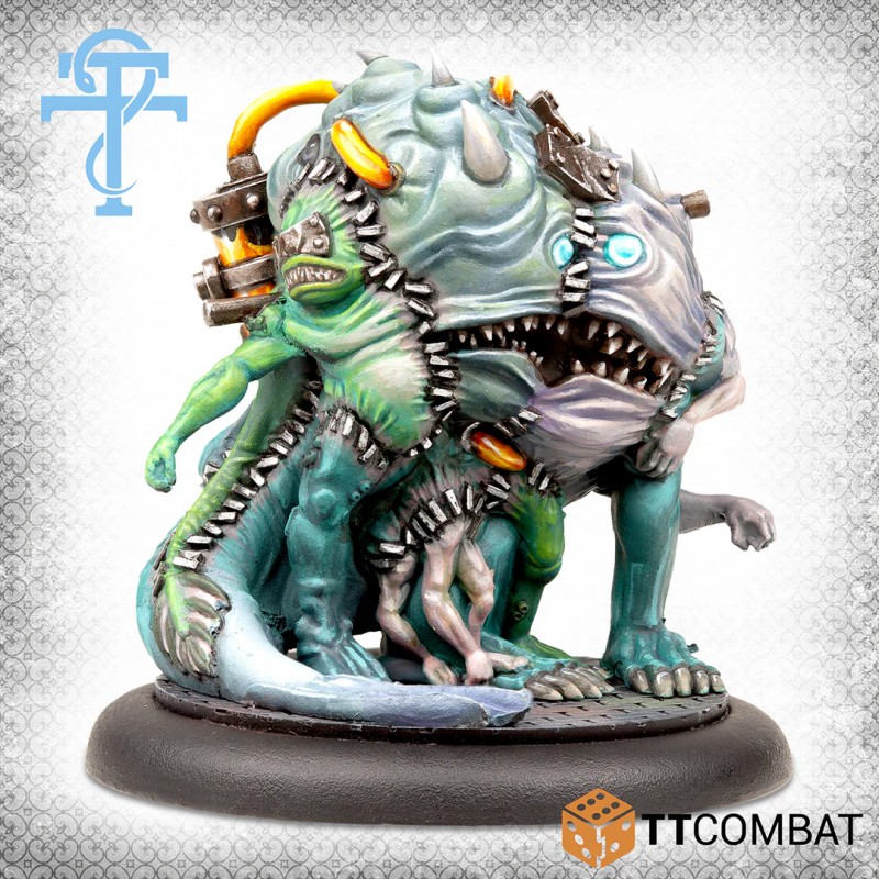 Fueled by the Elixir of Death, a Brinant Horror follows its masters, forming a macabre monstrosity built from parts of marine creatures. The kit contains 4 resin miniatures and 4 plastic bases. The stone bases shown are not included. The resin miniatures are supplied unpainted and unassembled, requiring cleaning and assembly, with minor gap filling possibly needed for optimal results.
