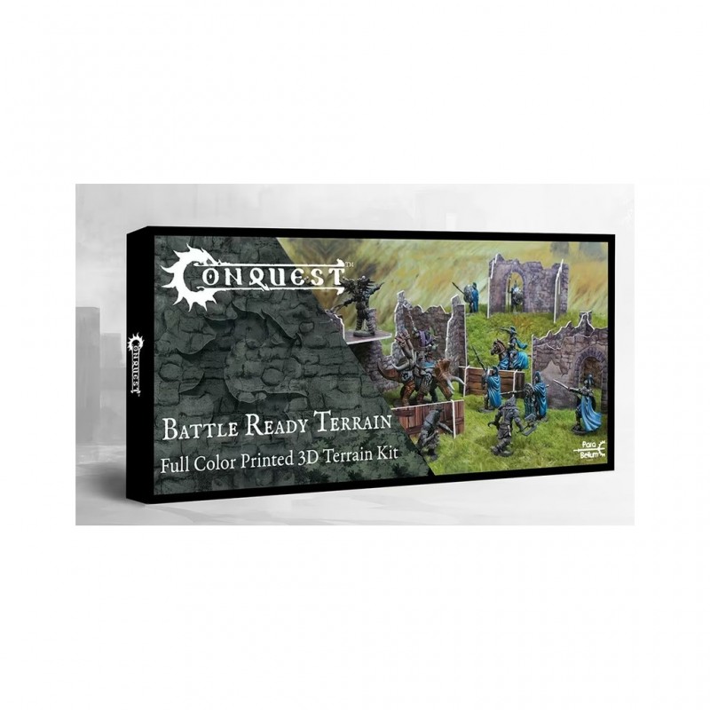 Instantly add depth and excitement to your Conquest: First Blood games with this set of 3D cardboard terrain designed for fast and immersive battles. This box contains 6 different terrain sets, allowing you to build a varied and functional battlefield in just a few minutes. Lightweight, practical, and easy to assemble, this terrain is ideal for players who want to enhance their gaming tables without spending hours building or painting heavy scenery.
