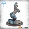 The Hippogriff swoops down from above with its claws, offering a tactical aerial option. Finally, the largest of all, the Hippocampus, a majestic sea stallion, moves effortlessly atop the waves and charges through the streets from the canals, knocking out any unfortunate enemy in its path. The kit contains 5 resin miniatures and 5 plastic bases. The stone bases shown are not included. The resin miniatures are supplied unpainted and unassembled, requiring cleaning and assembly, with minor gap filling possibly needed for optimal results.