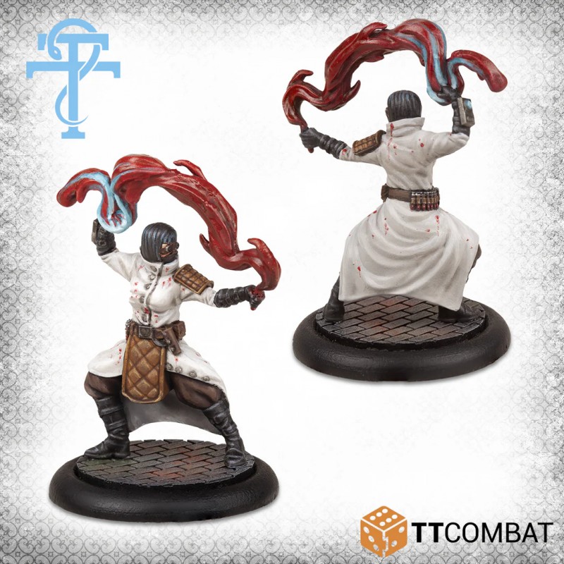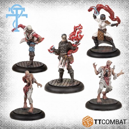 A new occult force rises in the streets of Venice with the Blood Studies set. This pack introduces characters devoted to the study and manipulation of blood, a discipline as fascinating as it is dangerous. These doctors push the limits of science and magic, turning a vital resource into a deadly weapon on the battlefield.