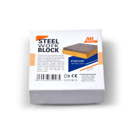 This steel work block provides a hard, flat surface ideal for working with photo-etched parts and making precise cuts. Heavy and stable, it stays firmly in place during use, making it a reliable tool for detailed modeling and hobby work where accuracy is essential.