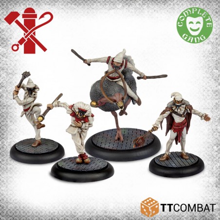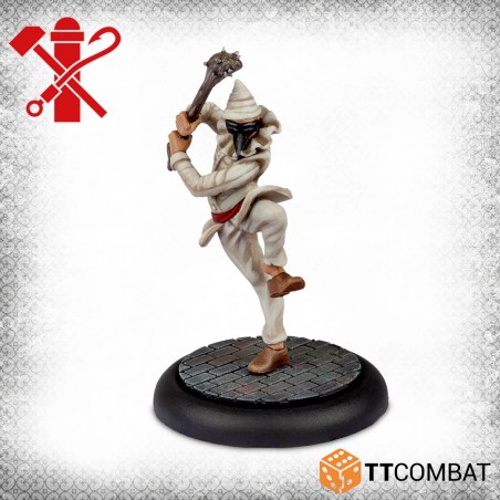 This box contains a complete Pulcinella gang or serves as an excellent addition to a Guild gang. The Pulcinella King urges his subjects to reach new heights, while a Pulcinella riding an ostrich charges through the streets like a true berserker atop a giant bird. The Pulcinella on foot are no less unsettling, relying on strength in numbers and sheer momentum to overwhelm their opponents.