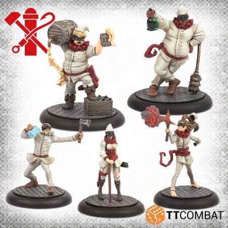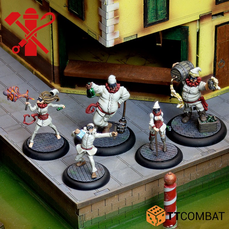 This box is designed for players who enjoy Pulcinella characters and want to expand their crew with new recruits and specialized profiles. It includes two new Pulcinella henchmen along with distinctive characters that bring added impact to the tabletop. The Brute dominates close combat with his imposing size and heavy club, delivering powerful melee strikes. The Fire Breather provides strong ranged attacks, helping maintain pressure from a distance. When paired with the Brewer, he can even make use of flaming bottles to enhance offensive options.