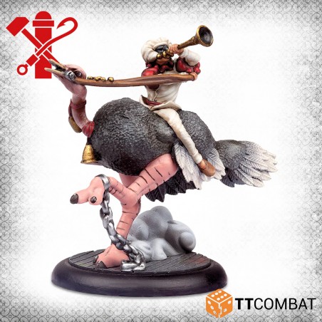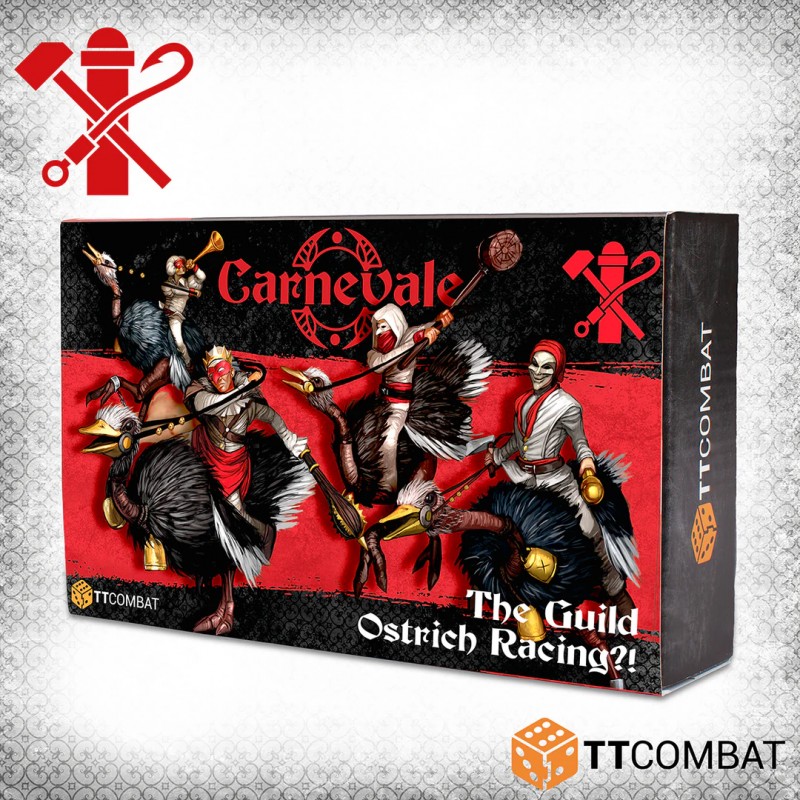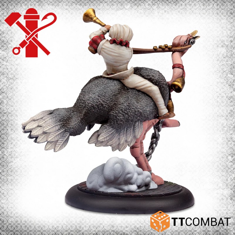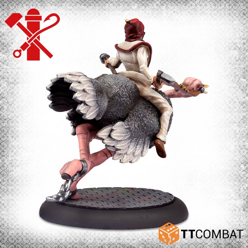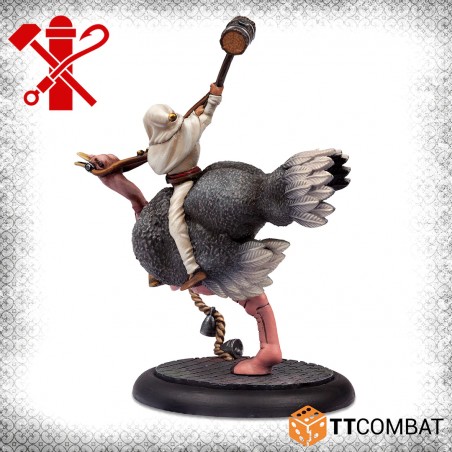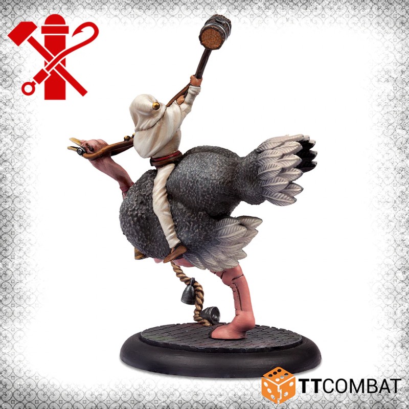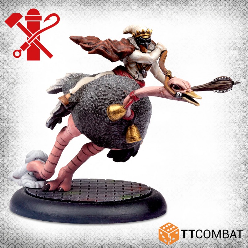Ostriches in Venice may sound unusual, yet in narrow streets where horses struggle to move, these unexpected mounts make surprising sense. Stolen from a shipment intended for the Doctors, these bipedal beasts quickly become the perfect ride for a band of unpredictable Pulcinella. Their exotic appearance and striking presence instantly enhance the visual impact of your collection and add a distinctive twist to your tabletop battles.
