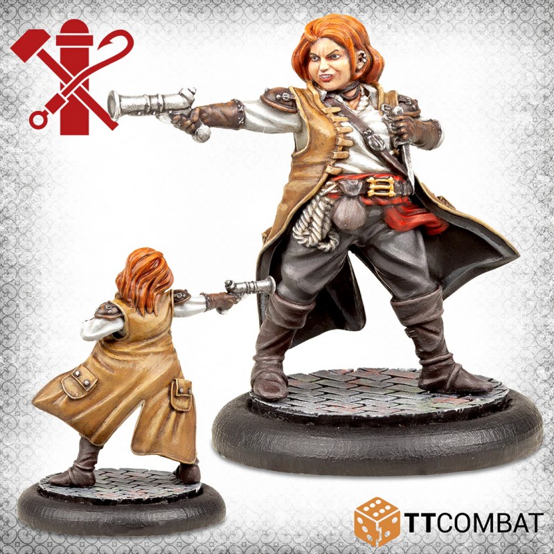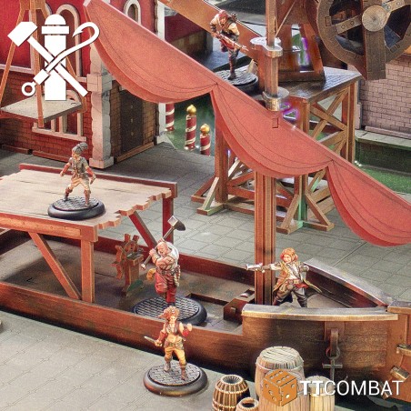 This set features dockers as the Guild’s maritime force. Tough and defensive, they perform effectively both on land and in water combat. The harbor captain leads the gang decisively, protecting his crew at all costs. The fisherman hunts dangerous creatures in the canals, while the shipwright strikes opponents with the same force he uses to rivet his vessels. Two additional mariners provide essential tactical support to dominate encounters on the water.