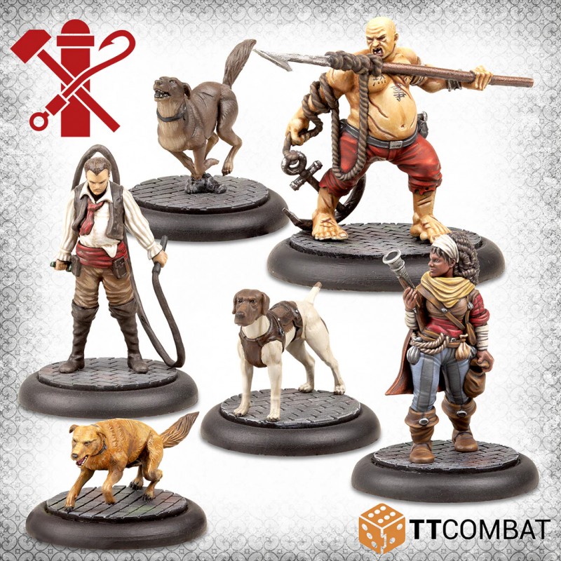 Committed to the Guild, or driven by profit, the shiphands defend docks and warehouses without hesitation. The massive whaler is skilled at hunting aquatic monsters, and his harpoon also allows him to hook and drag unfortunate opponents with force. The smuggler moves confidently along the docks, supplying illicit gains to her superiors. Meanwhile, the dog keeper commands a pack of loyal hounds, capable of harassing and unsettling the Guild’s enemies with coordinated bites and growls.