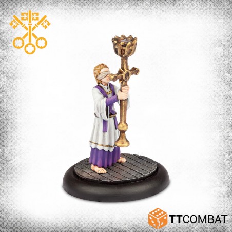 The Exorcist excels at dispelling enemy magic, clearing the way for the frenzied charges of two fanatical Martyrs. Empowered by the burning incense of the Altar Boy and the sacred presence of the Deacon bearing the cross, this gang is both dependable and fiercely aggressive on the battlefield.