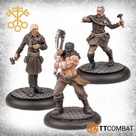 The Executioners and Crucifiers serve as the specialized elimination unit of the ecclesiastical forces. Executioners are capable of dealing devastating damage to enemies with large health reserves, wielding weapons designed to shatter the endurance of the toughest opponents. Crucifiers are especially effective against heavily armored targets, bypassing defenses to punish those hiding behind thick protection. Together, they form a lethal strike team.