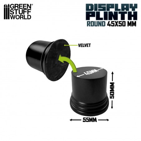 The underside features a dark green protective felt layer, designed to protect display surfaces from scratches while adding a clean, professional finish. Ready to use, this plinth is an ideal choice for hobbyists, painters, and collectors who want to present their miniatures in a safe, elegant, and durable way.