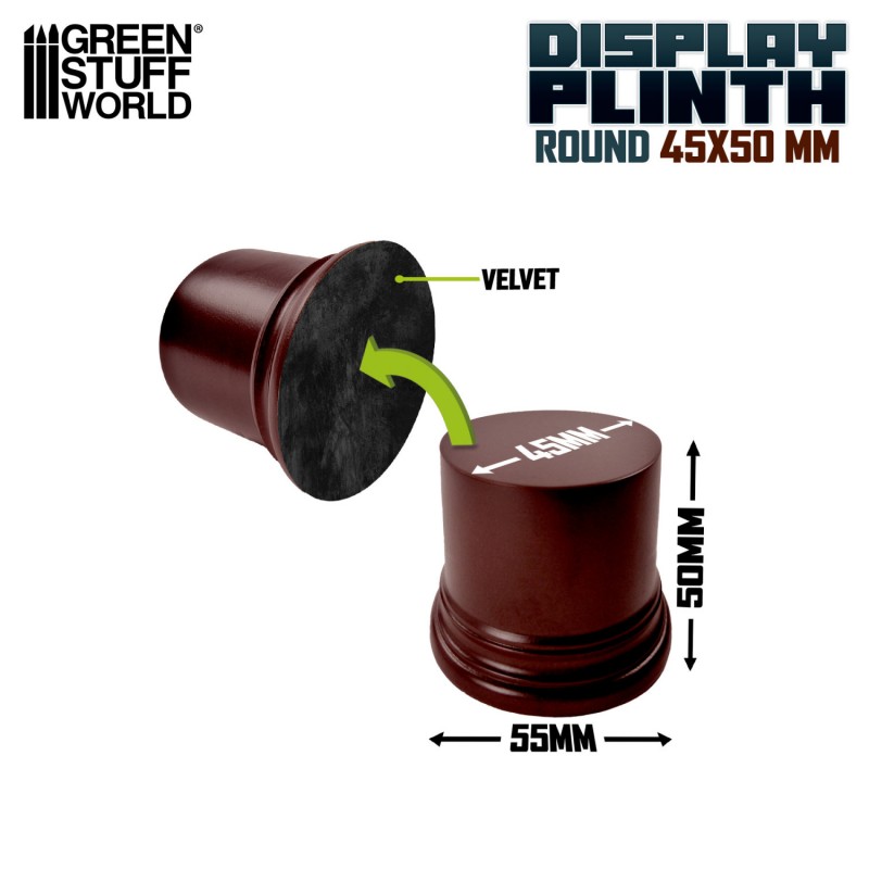 The underside features a dark green protective felt layer, designed to protect your furniture or display surfaces from scratches while providing a clean and professional finish. Ready to use, this plinth is an excellent choice for hobbyists, painters, and collectors looking to present their miniatures in an elegant and secure way.
