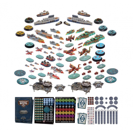 This two-player starter set contains everything needed to play the narrative campaign The Dominion of the Dragon. Players command the naval forces of the Crown and the Empire as they battle for control of the Ashmore Refinery, a vital facility responsible for processing sturginium, the most valuable resource of the Dystopian Age. The campaign guides players through a series of narrative encounters designed to teach the rules while delivering dramatic and tactical battles.