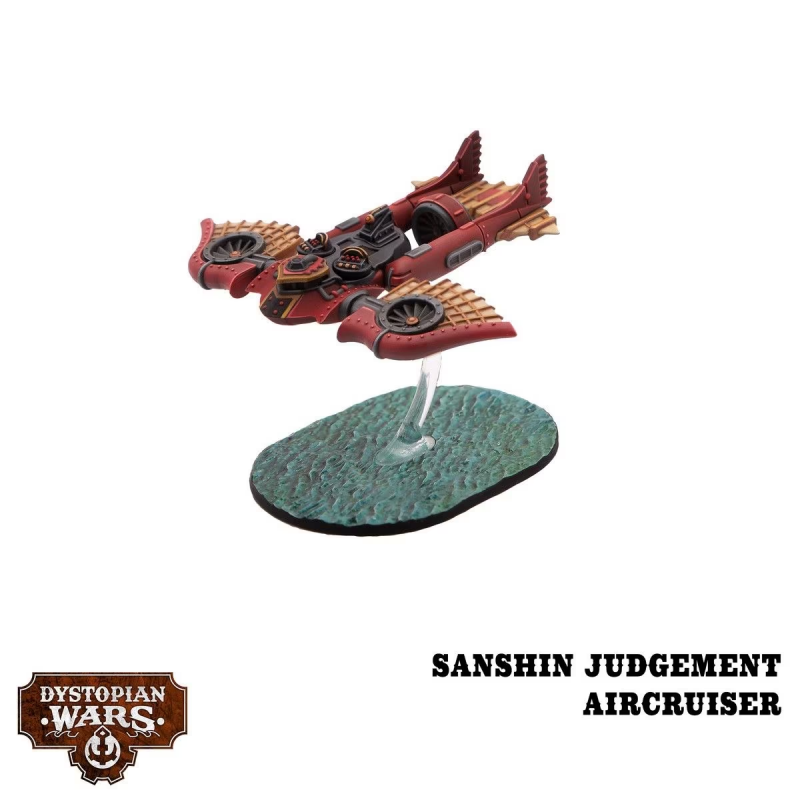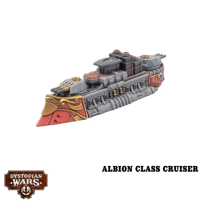 Dystopian Wars is a naval tabletop wargame featuring highly detailed miniatures that represent massive engines of destruction battling on, above, and below the seas. Set during the Dystopian Age, an alternate version of the late nineteenth century, the world’s Great Powers wage war using super-science and alien technology to dominate resources and territory. Battleships and cruisers rule the oceans while sky fortresses and dirigibles soar overhead. Beneath the waves lurk submarines, tentacled automata, and colossal mechanical constructs, while fighters and bombers circle above waiting to strike.