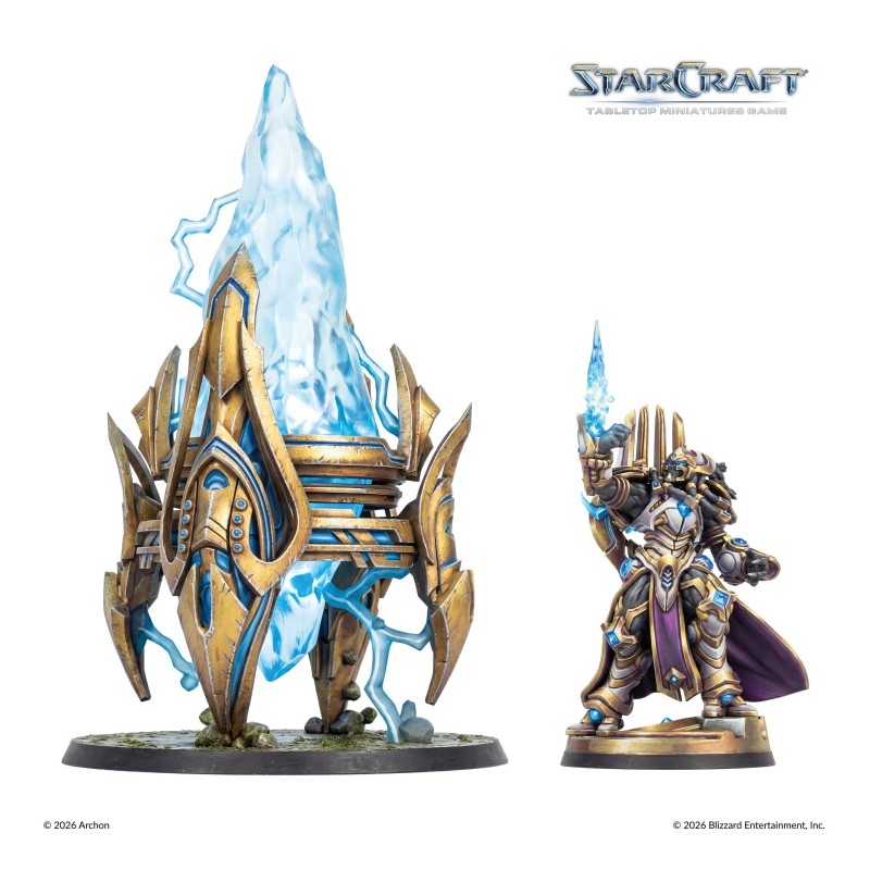 The set includes iconic Protoss units. Zealots charge fearlessly in melee, Adepts strike quickly and precisely, while Sentinels guard your lines and provide battlefield control. Artanis leads your army with strategic insight, and the Pylon supports your advanced units with energy and reinforcement.