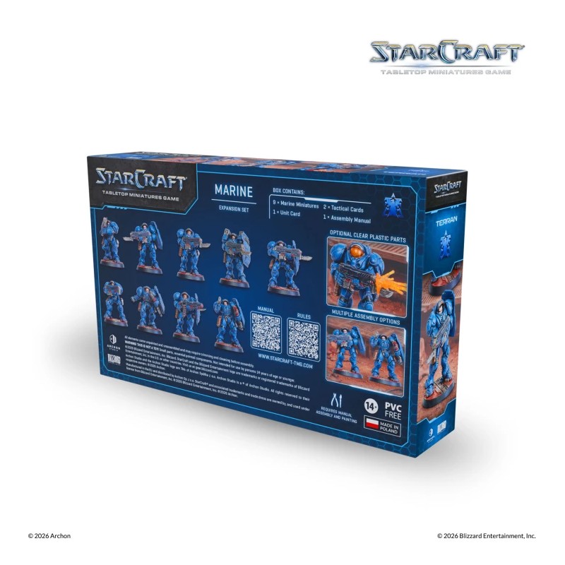 All miniatures are supplied unassembled and unpainted, allowing hobbyists to customize their Terran army and faithfully recreate the StarCraft universe on their tabletop.