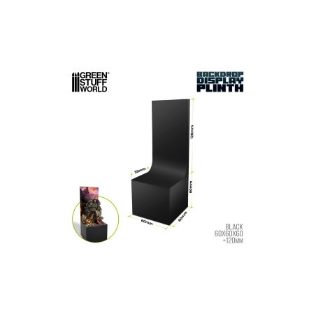 A design created to showcase miniatures. The curved backdrop creates a smooth visual transition behind the miniature, helping the model stand out and improving the overall presentation. This structure also makes it easy to build small scenic elements directly onto the base, allowing hobbyists to create compact dioramas. The lacquered black finish provides a clean, professional look that works well with fantasy, science-fiction, historical miniatures, or collectible busts. The MDF construction ensures a sturdy and durable base suitable for long-term display.