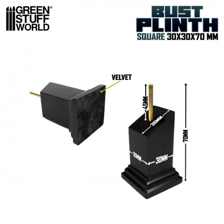 A compact format designed for busts and small display pieces. The top surface measures 3 x 3 cm, providing a discreet support for your miniature, while the wider 4.5 x 4.5 cm base ensures good stability. With a total height of 7 cm, the base elevates the model to enhance its presence in a display cabinet or exhibition setting. Its simple and functional design makes it an ideal display support for miniature painting and modelling projects.
