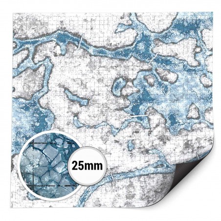 Optimized grid for tactical miniature gameplay. The integrated grid is designed for movement-by-square systems, allowing miniatures to be placed clearly and accurately during tactical encounters. Snowy terrain details, frozen water and subtle texture variations add depth and realism without interfering with grid readability or the placement of additional terrain pieces. The result is a visually immersive battlefield that maintains clear gameplay.