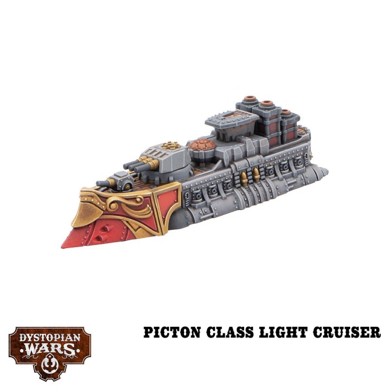 The set also includes 4 Escort Tokens and 2 SRS Tokens. Miniatures are supplied unpainted and require partial assembly. With this set, players can strengthen their fleet, combine firepower with mobility, and execute diverse strategies to dominate intense tactical engagements in Dystopian Wars.