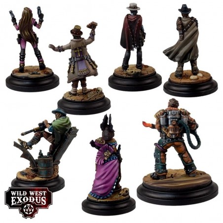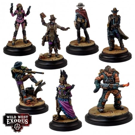 This kit includes 7 multi-part resin miniatures: Giulianna Starr, Leroy Sabat, Papa Trinity, Bud “Scorcher” Hutch, Ignatius Nero, Joey Manco, and Sadie Walker, along with 7 bases. Miniatures are supplied unpainted and require assembly. Character Unit Cards are not included and can be found on the official Wild West Exodus website. Ideal for expanding your collection or deploying a charismatic and formidable posse on the battlefield.