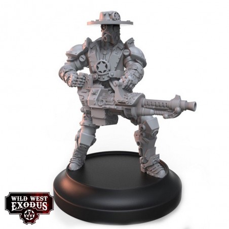 The UR-31C Heavy Lawbot kit builds 1 multi-part resin miniature and includes 1 base. Miniature is supplied unpainted and requires assembly. Character Unit Cards are not included and can be found on the official Wild West Exodus website. Perfect for strengthening your Lawmen forces with a durable, intimidating, and highly effective unit for intense battlefield engagements.