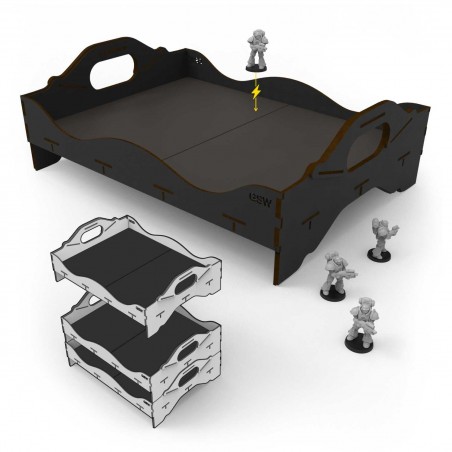 Thanks to its stackable design, multiple trays can be combined to organize miniatures by army, project, or game system. With a usable surface of 300 x 420 mm, it provides enough space for full units while remaining easy to transport. The set includes 1 tray and 2 adhesive metallic sheets, making it a practical and reliable solution for protecting, organizing, and transporting your miniatures efficiently.