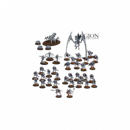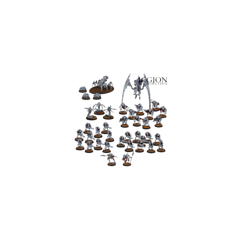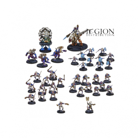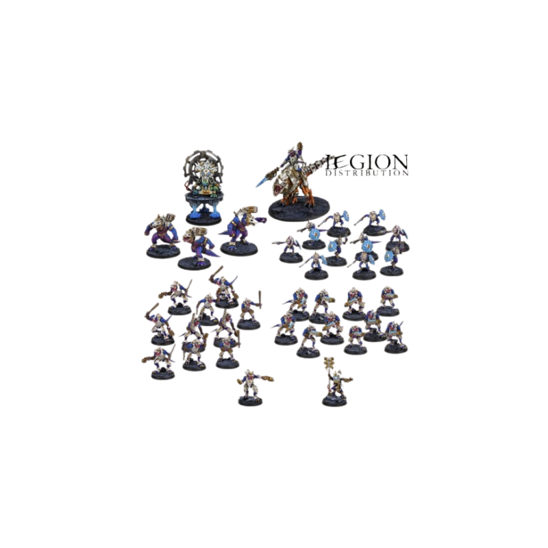 This starter includes two iconic opposing forces: the Saurian Starhosts and the Robot Legions. Each army features a varied composition that showcases different gameplay mechanics and tactical approaches. The Saurians include a Saurian Veteran, a Gecko Psychic, Gators, and units of Geckos and Saurians. Opposing them, the Robot Legions field an Overseer, a Technomancer, Guardians, Robot Warriors, Bot Swarms, and a Forge Spider. This balanced setup allows for immediate and engaging gameplay.