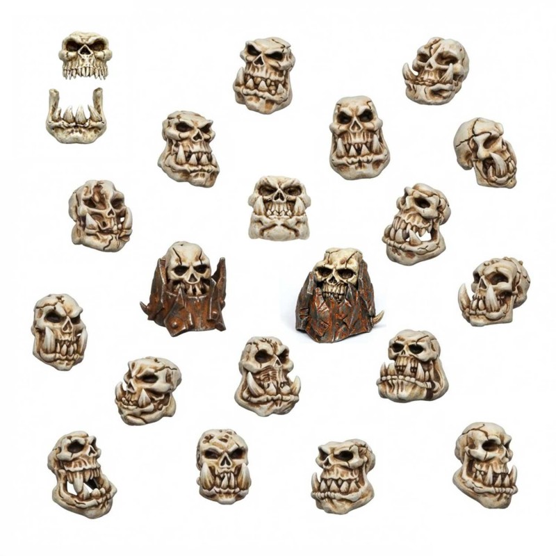 Orc Skulls Resin Set – 21 Pieces – Green Stuff World