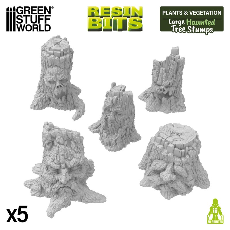 Enchanted Tree Stumps Resin 3D Set – 5 Pieces – Green Stuff World