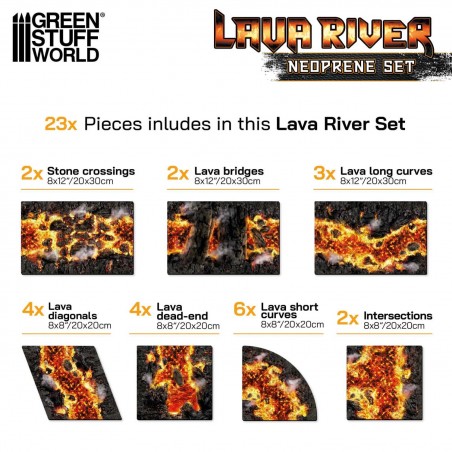 Bring a dramatic and immersive touch to your tabletop with this 2D neoprene terrain set – Lava River. Designed for RPGs and wargames, this set instantly transforms your battlefield into a fiery environment featuring a 10 cm (4-inch) wide lava river. With detailed visuals including smoke and glowing rocks, it creates a striking setting where every movement becomes a tactical decision.