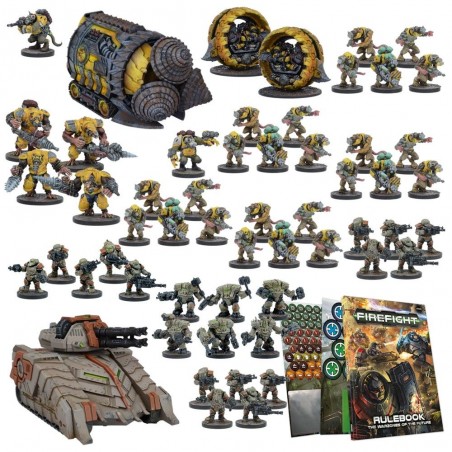 This fantastic starter set includes over 55 highly detailed Mantic miniatures, along with vehicles, rules and army lists, a quick start guide, dice, and tokens. Designed as a complete entry point into the Warpath universe, this box is the perfect introduction to Firefight, a fast-paced, tactical, and action-packed tabletop wargame. It provides everything needed for both new and experienced players to dive straight into structured and dynamic battles.
