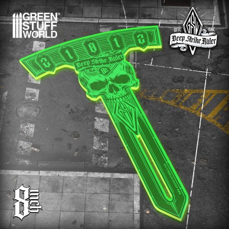 The transparent fluorescent material enhances visibility, even in low-light conditions, while the polished edges allow smooth handling without risking damage to painted miniatures. Durable, lightweight, and highly practical, this Deep Strike ruler is a must-have accessory for smoother, fairer, and more immersive games.
