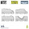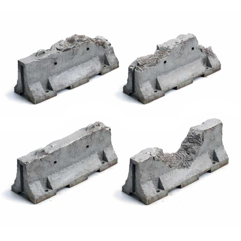 Commonly known as Jersey barriers, these obstacles take their name from their first large-scale use in the state of New Jersey, where they were installed to separate highway lanes and significantly reduce accidents. Today, they are widely used around the world to secure restricted areas, control traffic, and block access points. In this damaged version, these terrain elements are particularly well suited for creating war-torn cityscapes, disaster zones, or abandoned infrastructure settings, helping to strengthen the visual immersion and tactical depth of your tabletop layouts.