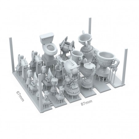Celebrate victory on the tabletop with these highly detailed 3D-printed miniature trophies, designed to add prestige and storytelling depth to your hobby projects. These finely crafted accessories are perfect for enhancing miniature bases, dioramas, and gaming tables by introducing symbols of achievement and recognition. Their detailed design makes them ideal for representing coveted prizes, legendary championships, or trophy displays, helping to strengthen the narrative and visual identity of your scenes.