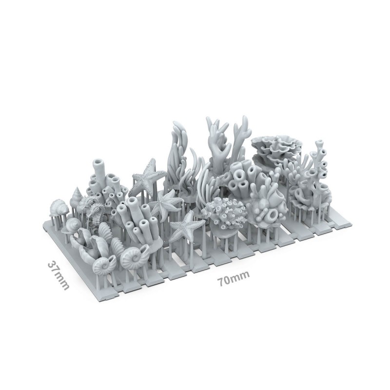 Add life and colour to your bases and scenery with this set of 3D-printed corals and underwater vegetation. Crafted in highly detailed resin, these components are designed to instantly transform your models into rich and immersive aquatic environments. Each piece is carefully designed to enhance visual depth by introducing organic shapes and natural forms that evoke the diversity of underwater ecosystems.