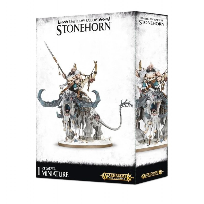 This multi-part plastic kit contains all the components necessary to assemble one Frostlord on Stonehorn, with a Citadel 120x92mm Oval base. The kit can optionally be used to assemble a Huskard or Beastriders on Stonehorn, or a Huskard, Frostlord or Beastriders on Thundertusk.