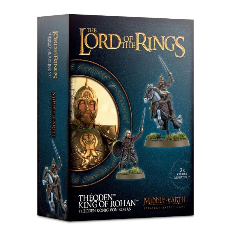 Théoden, King of Rohan on Foot and Horseback is a multipart plastic kit supplied as 2 models, 1 on foot and 1 mounted and charging. Both models feature options for a helmeted or unhelmeted head, and both are clad in heavy armour, and armed with his sword, Herugrim. On foot, Théoden holds a shield; mounted, that shield is stowed.