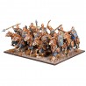 From the desolate deserts, the accursed armies of the Ahmunite pharaohs advance to reclaim their once-great empires. Without concern for their own losses, rows upon rows of gilded skeletons and revenants march forward into battle, knowing that any fallen soldier can be resurrected to continue fighting for the glory of their pharaohs.