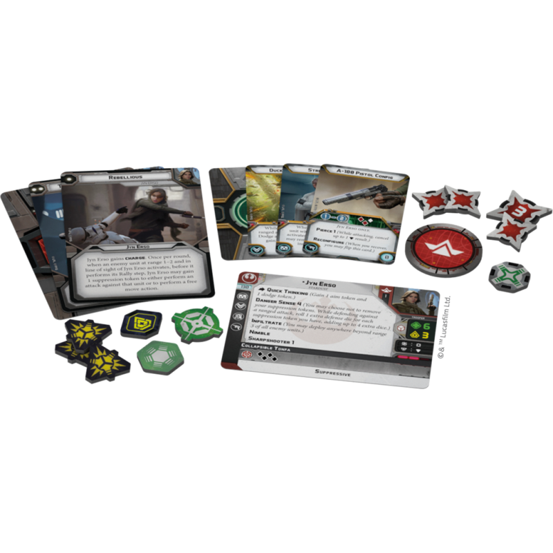 This expansion for STAR WARS : LEGION includes a finely sculpted Jyn Erso figure, which can be used as a Commander unit on the battlefield. She comes with new Unit, Upgrade and Command cards to enhance her strategic capabilities.