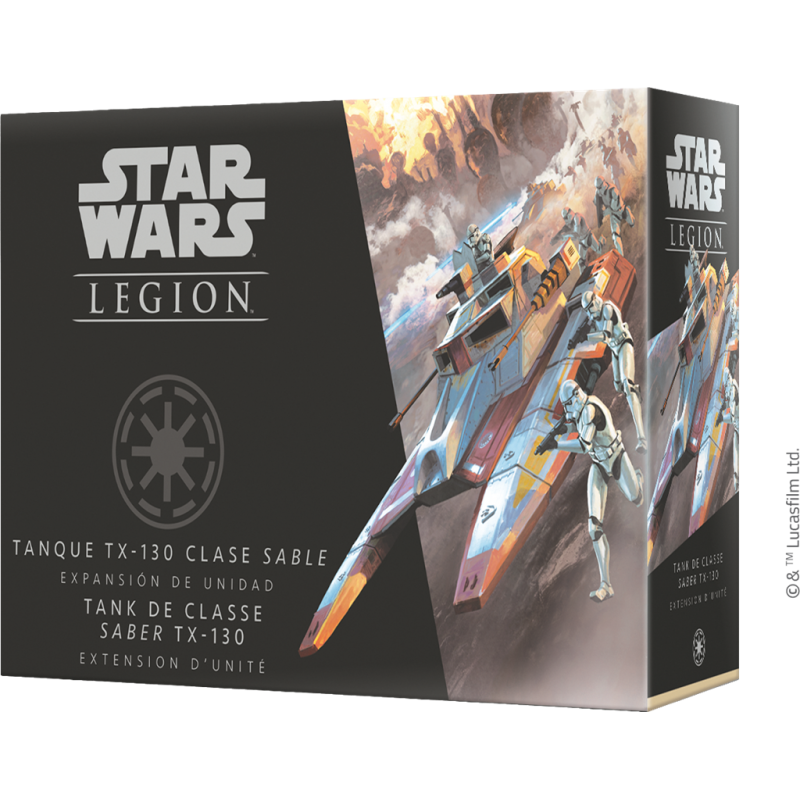 The Saber TX-130 Class Tank expansion for STAR WARS: LEGION includes one plastic figure, one Unit card, 10 Upgrade cards, 12 miscellaneous counters and a rule sheet detailing the rules for using this powerful war machine on the battlefield.