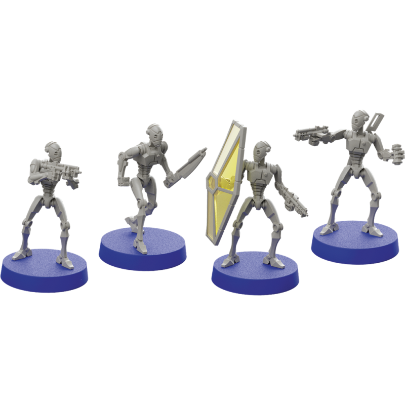 The BX series droids, also known as commandos, are far ahead of their B1 battle droid cousins in terms of technology. With superior intelligence, stealth and deadly hand-to-hand capability, these elite droids are able to set up traps and ambushes to take their enemies by surprise. They then take them out using their deadly vibroblades or by opening fire on them.