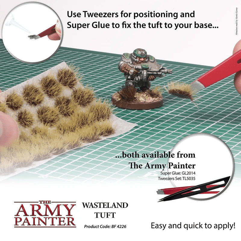 The Wasteland Tufts evoke the ominous aura of a rugged environment, perfect for creating an "evil" setting for your army. Utilize these model basing materials to craft miniature scenery bases that capture the essence of desolation. The tufts, boasting a super realistic appearance and available in three sizes to suit any base size, are incredibly easy to apply. Enhance both your battlefields and individual miniatures with these versatile tufts, attaching them effortlessly with the assistance of our Tweezer Set and Super Glue.